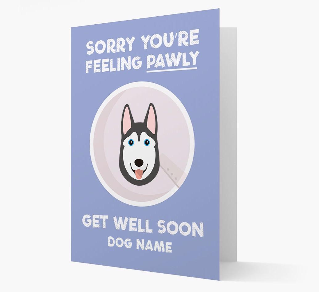 'Sorry You're Feeling Pawly' - Personalized Siberian Husky Get Well Soon Card
