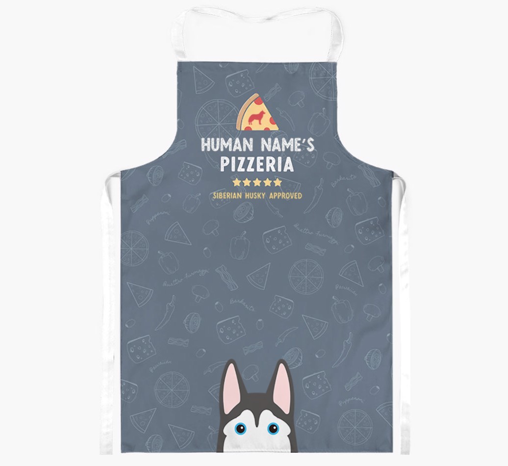 Featuring your furry friend's icon and lick of approval, plus your chosen human name, this apron is pawfect for anyone who considers themselves a pizza maestro in the kitchen. Available in a choice of 5 rustic colors, it'll make any Husky lover happy.