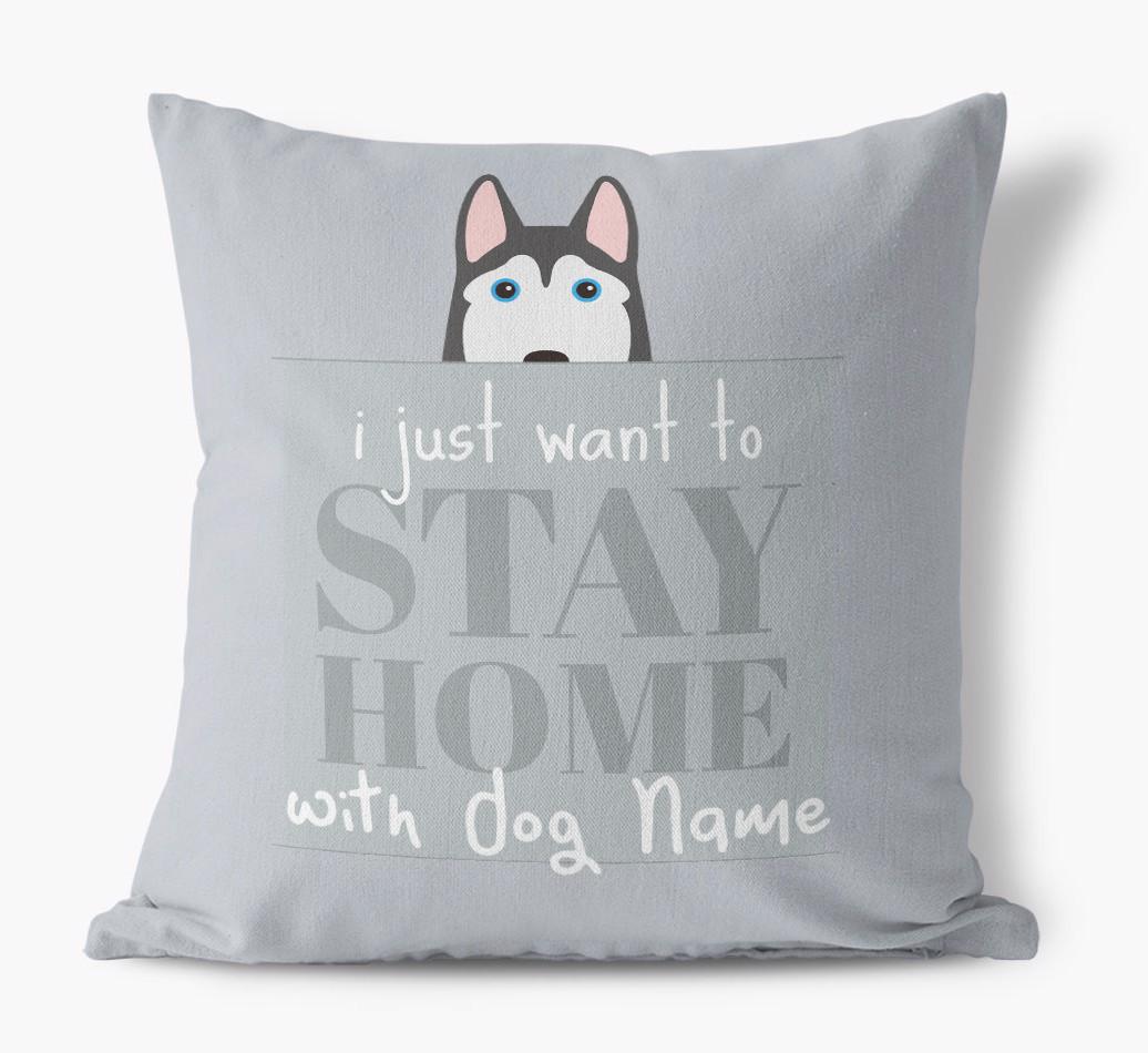 Stay Home: Personalized Siberian Husky Canvas Pillow