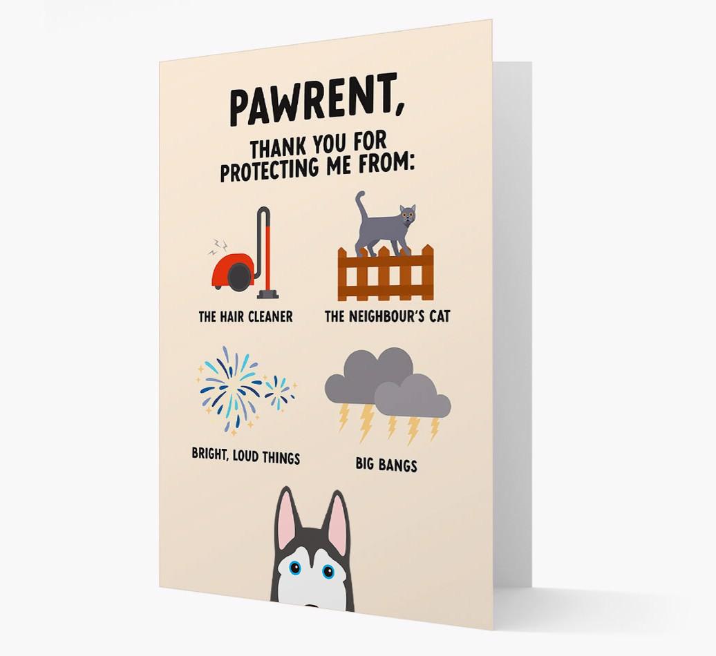 This pawsome card is the ultimate way to let Your Husky's owner know that their Siberian Husky is fur-tunate to have them as a pawrent!