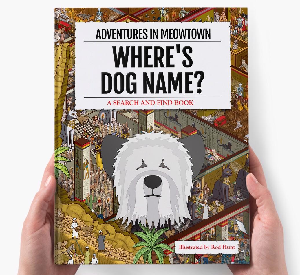 Get ready to unleash your inner detective with our popular Search & Find book, ‘Where’s (insert dog name)?’ It’s the personalized dog book everyone’s yapping about! With twelve beautifully illustrated locations to explore, we challenge you to find your adventurous {breedShortName} on each action-packed page. Can you spot all the canine cameos and funny parodies too?