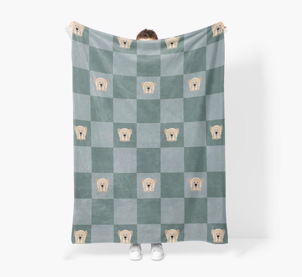 'Checkboard' - Personalized Skye Terrier Blanket: Premium Sherpa Fleece