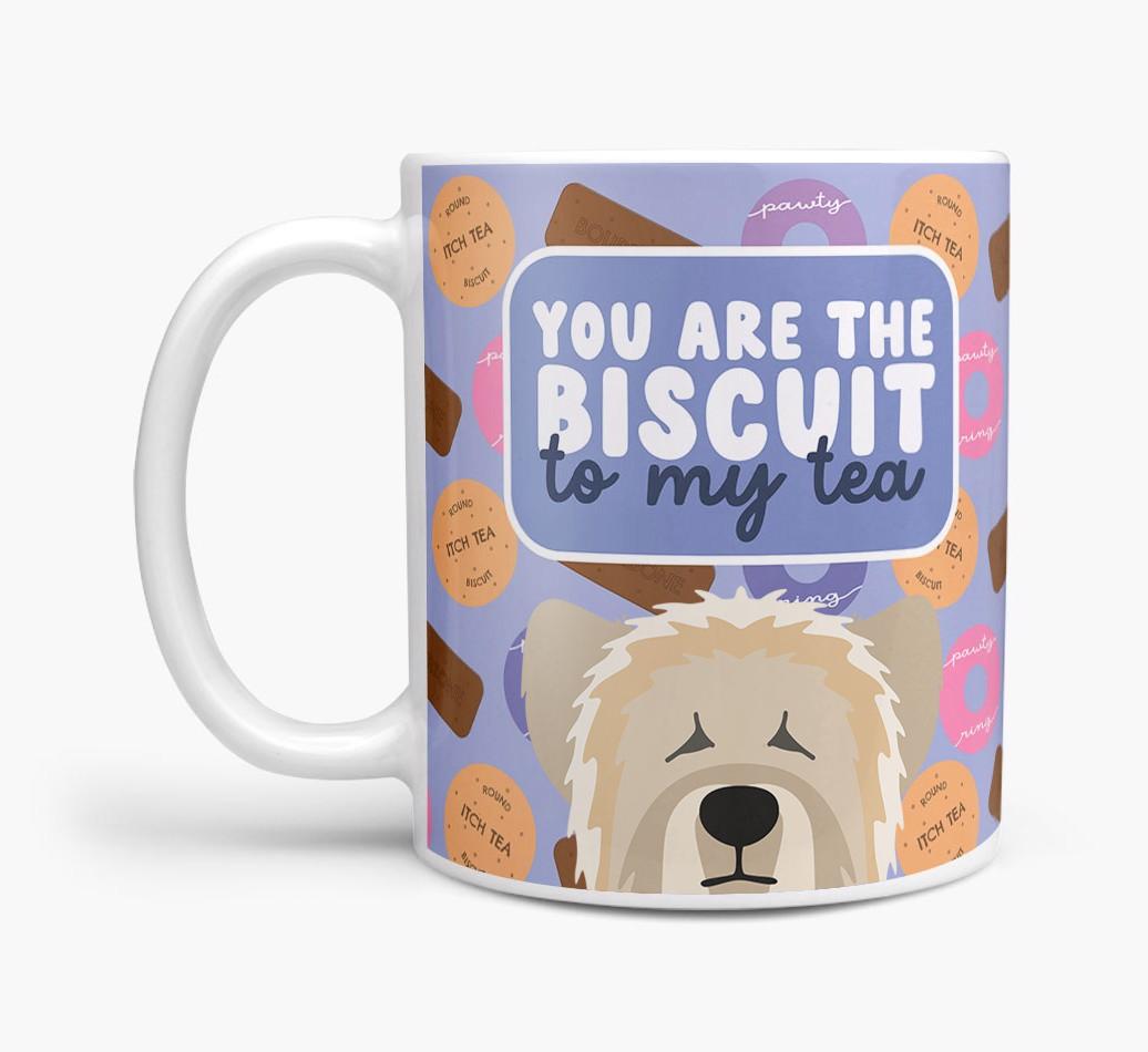 Featuring a cute biscuit motif paired with your Skye Terrier's adorable face, this mug is bound to be a firm favorite in every household.