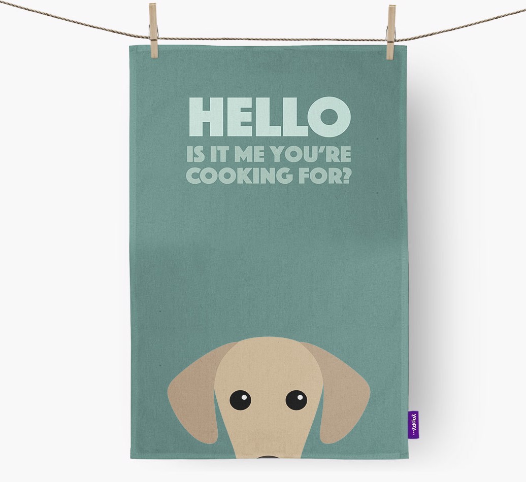 This gorgeous dish towel is sure to delight every Sloughi pawrent, especially as it stars their pup asking their favorite question, 'is it me you're cooking for?'