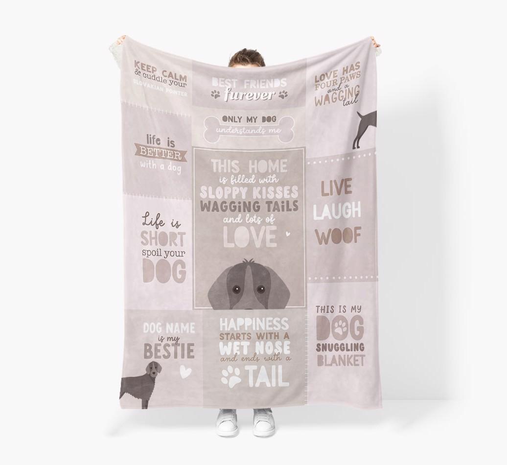 Made from luxuriously soft sherpa fleece material, this blanket is guaranteed to keep you cosy and snug, pawfect night with Slovakian Rough Haired Pointer.