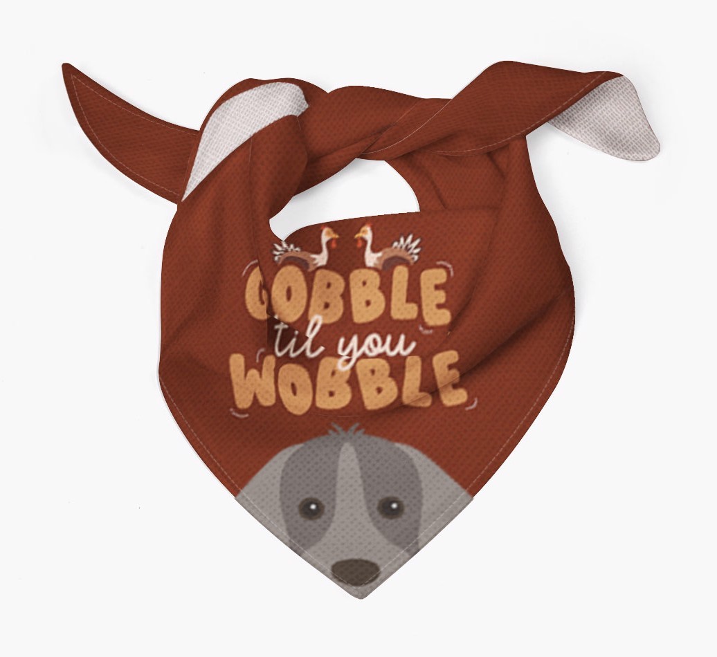 This cute custom bandana is printed with the phrase of the season, "gobble til you wobble"!