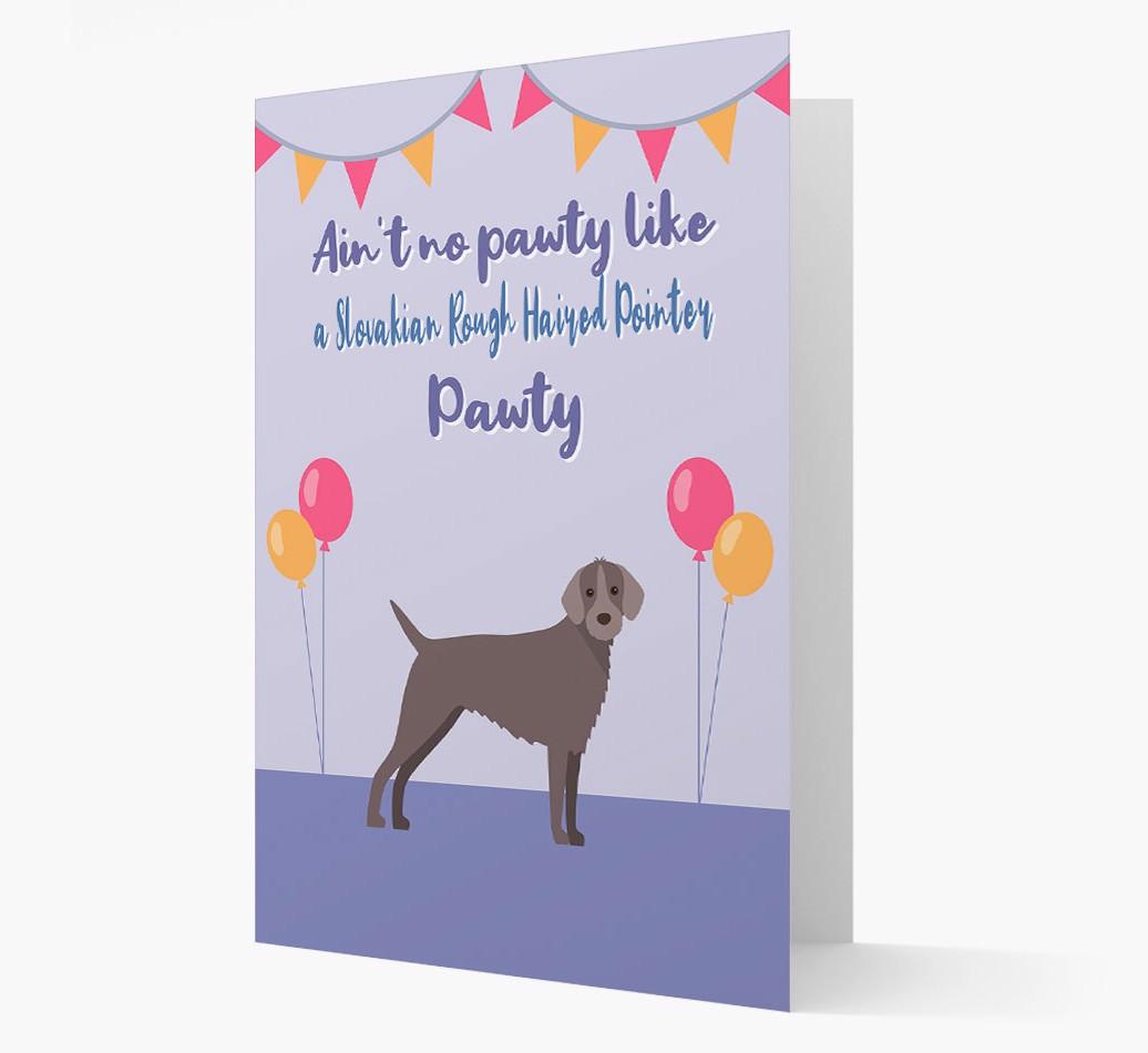 This wagnificent birthday card is a fun way to celebrate Slovakian Rough Haired Pointer's or their owner's special day. Plus, it's customized with a pawsome Pointer icon to really get the pawty started. The recipient will woof it!