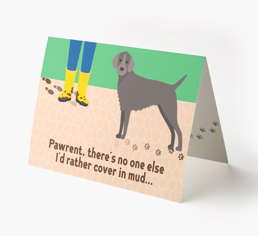 This comical card is sure to delight Slovakian Rough Haired Pointer's pawrent (without getting muddy), especially as it stars their Pointer's cheeky icon.