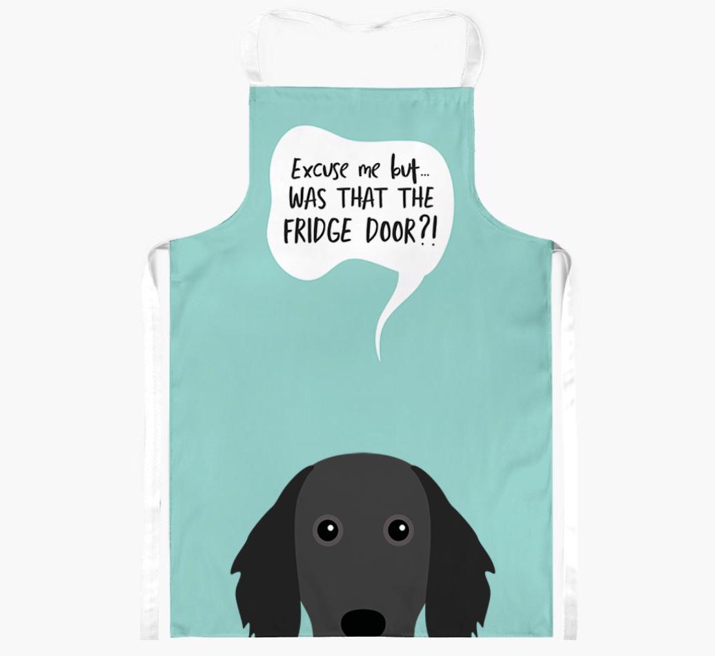 Featuring your hungry hound's cheeky icon and available in five eye-catching colors, this apron is a must-have for parents of greedy pups!