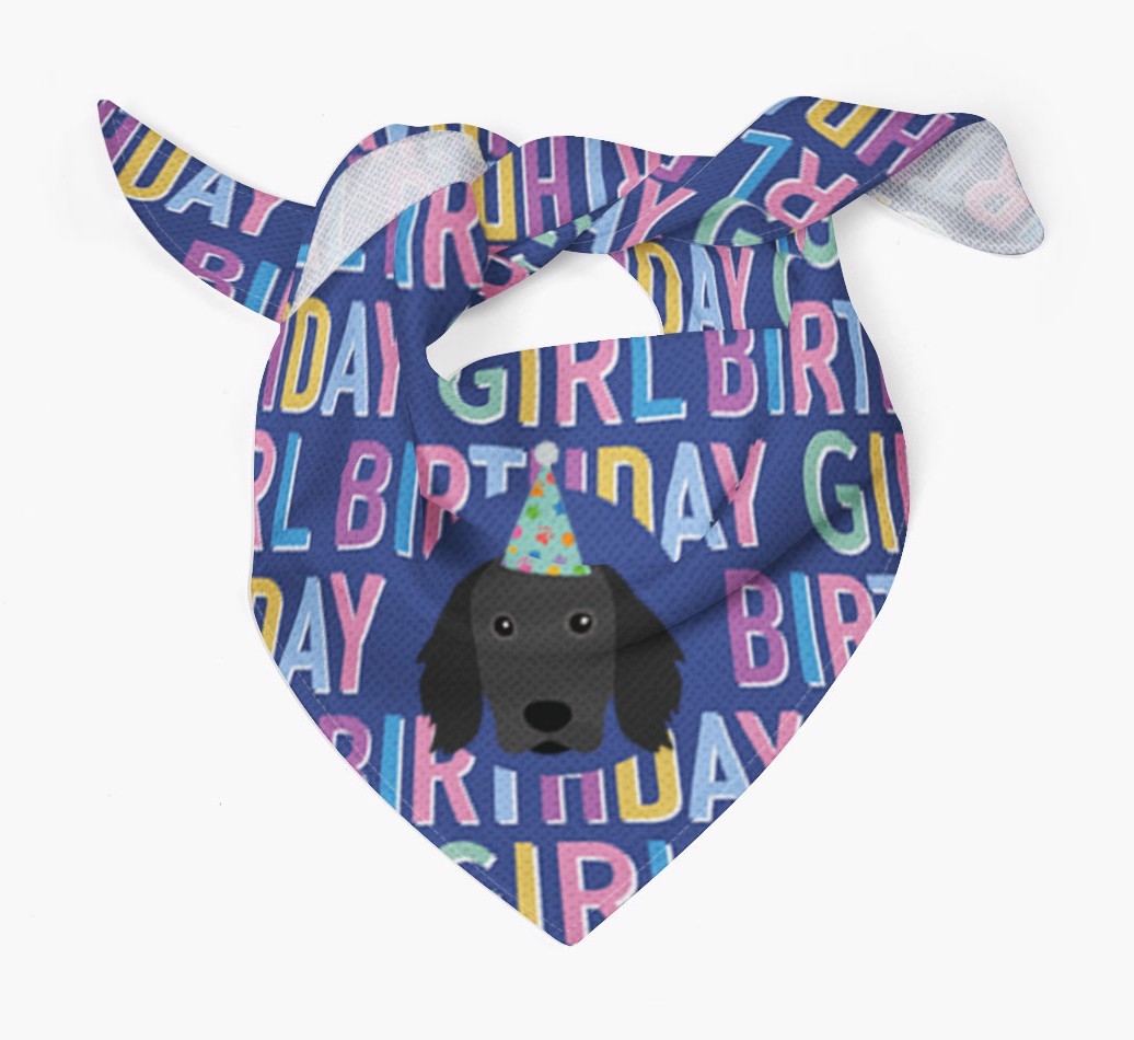 Featuring a text pattern that reads 'birthay girl' and personalized with Small Munsterlander's cute icon (complete with a fun party hat), your Munster will look simply pawgeous on their special day when they're wearing this bandana.