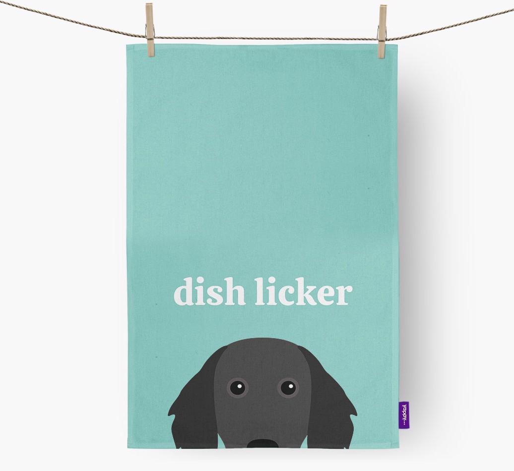 'Dish Licker' - Personalized Small Munsterlander Dish Towel