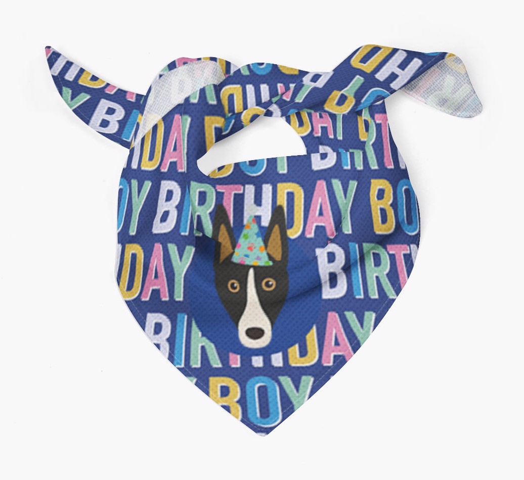 Featuring a colorful text pattern that reads 'birthay boy' and personalized with Smooth Collie's cute icon (complete with a fun party hat), your Collie will look simply pawgeous on their special day when they're wearing this bandana.