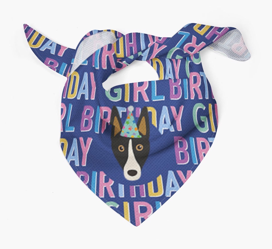 Featuring a text pattern that reads 'birthay girl' and personalized with Smooth Collie's cute icon (complete with a fun party hat), your Collie will look simply pawgeous on their special day when they're wearing this bandana.