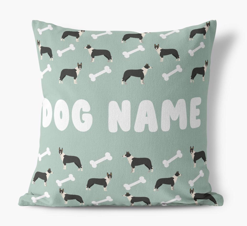 Personalized with Smooth Collie’s name against a background of Collie icons and bones, this gorgeous pillow is full of pawsonality.