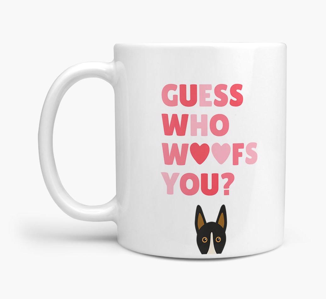 Personalized with Smooth Collie's cute face, this adorable mug is perfect for showing off the one who "woofs" you - how sweet!