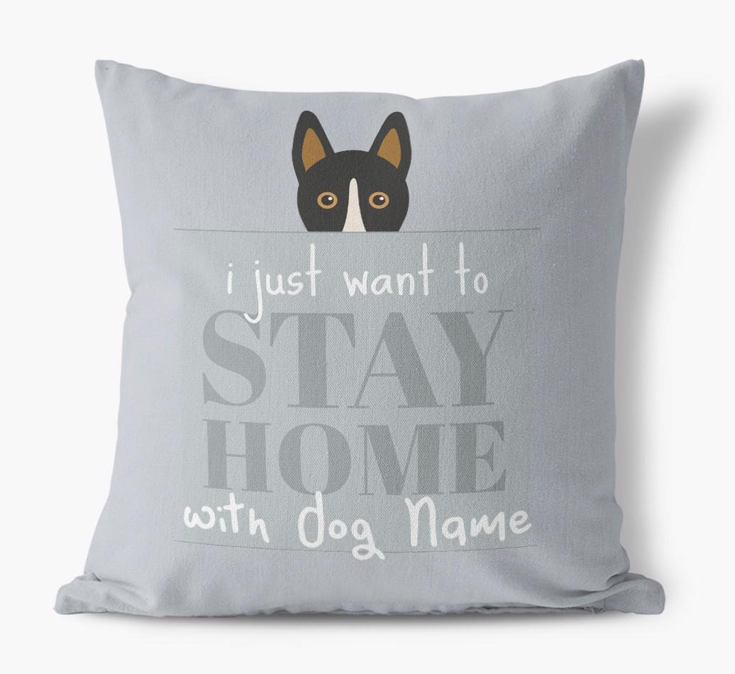 Stay Home: Personalized Smooth Collie Canvas Pillow