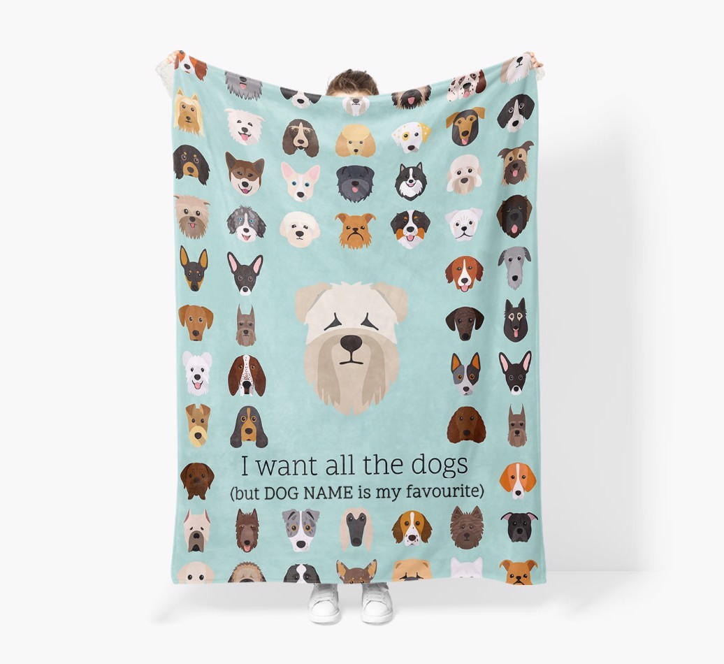 'All The Dogs' - Personalized Soft Coated Wheaten Terrier Blanket: Premium Sherpa Fleece