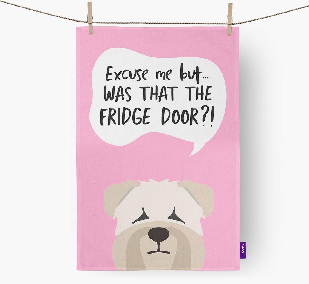 'Was That The Fridge Door?!' - Personalized Soft Coated Wheaten Terrier Dish Towel
