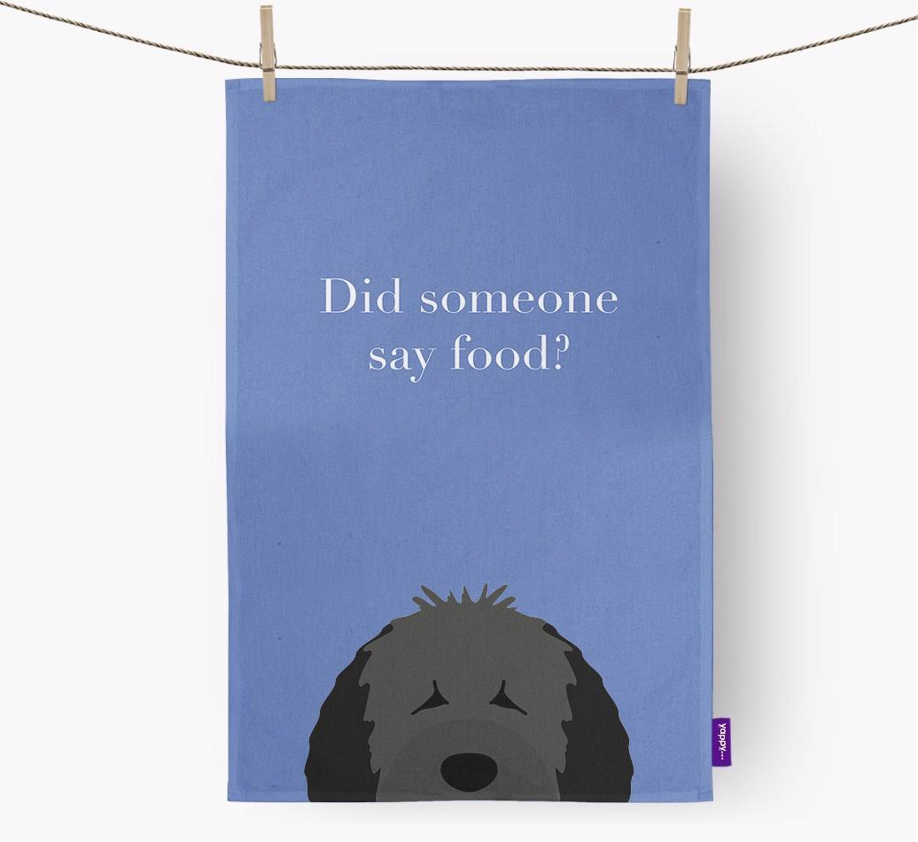 'Did Someone Say Food?' - Personalized Spanish Water Dog Dish Towel