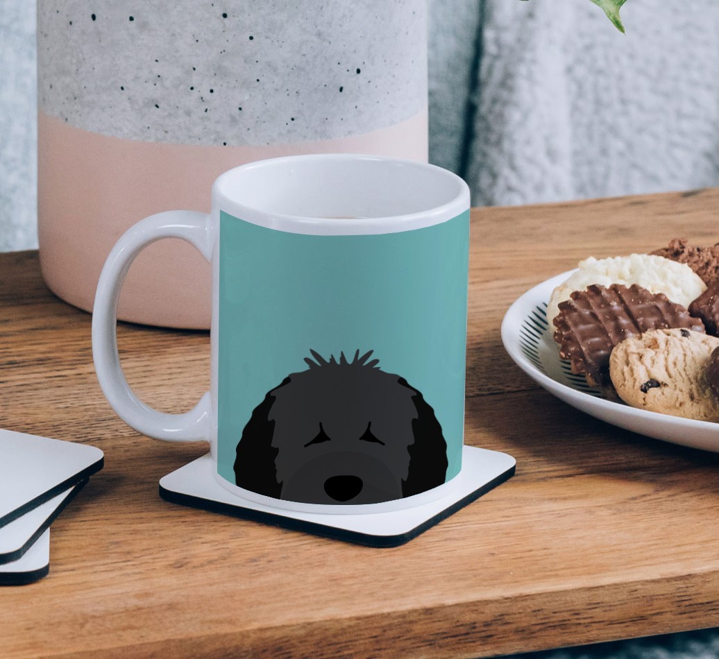 Enjoy the perfect coffee break with a mug that stars your furry friend! Featuring a Yappy.com exclusive Spanish Water Dog peeking icon, this pawgeous mug will look at home in any dog lover's kitchen and we're pretty sure Spanish Water Dog will be a fan too.