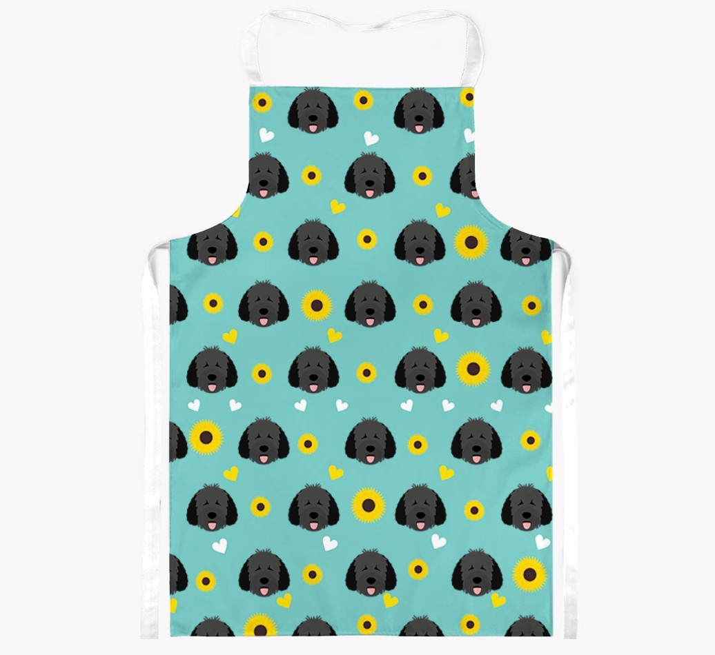 This apron has a delightful sunflower and heart pattern, and best of all - it's personalized with Spanish Water Dog's face too! This cute and colorful apron is sure to put a smile on every dog lover's face.