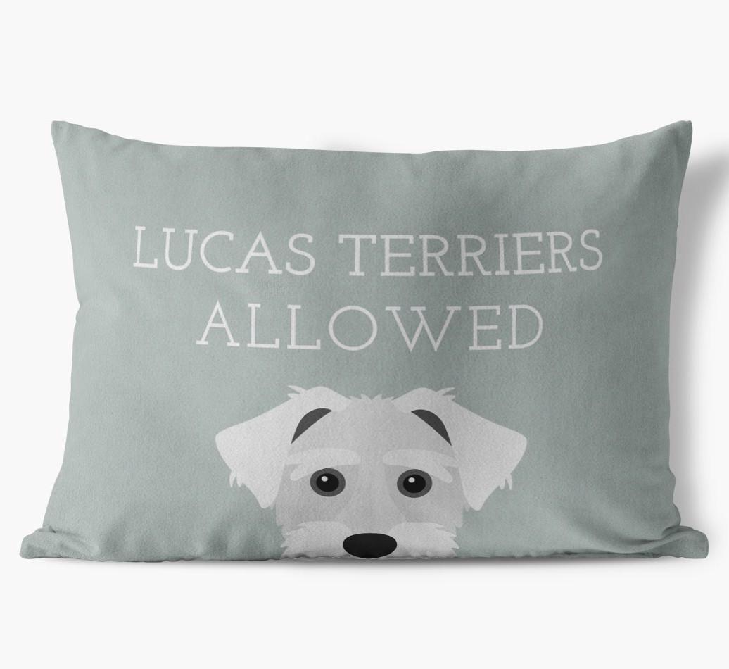 This exclusive, luxurious pillow is printed with the words ‘Lucas Terriers Allowed’, which I’m sure Your Lucas Terrier would definitely approve of.