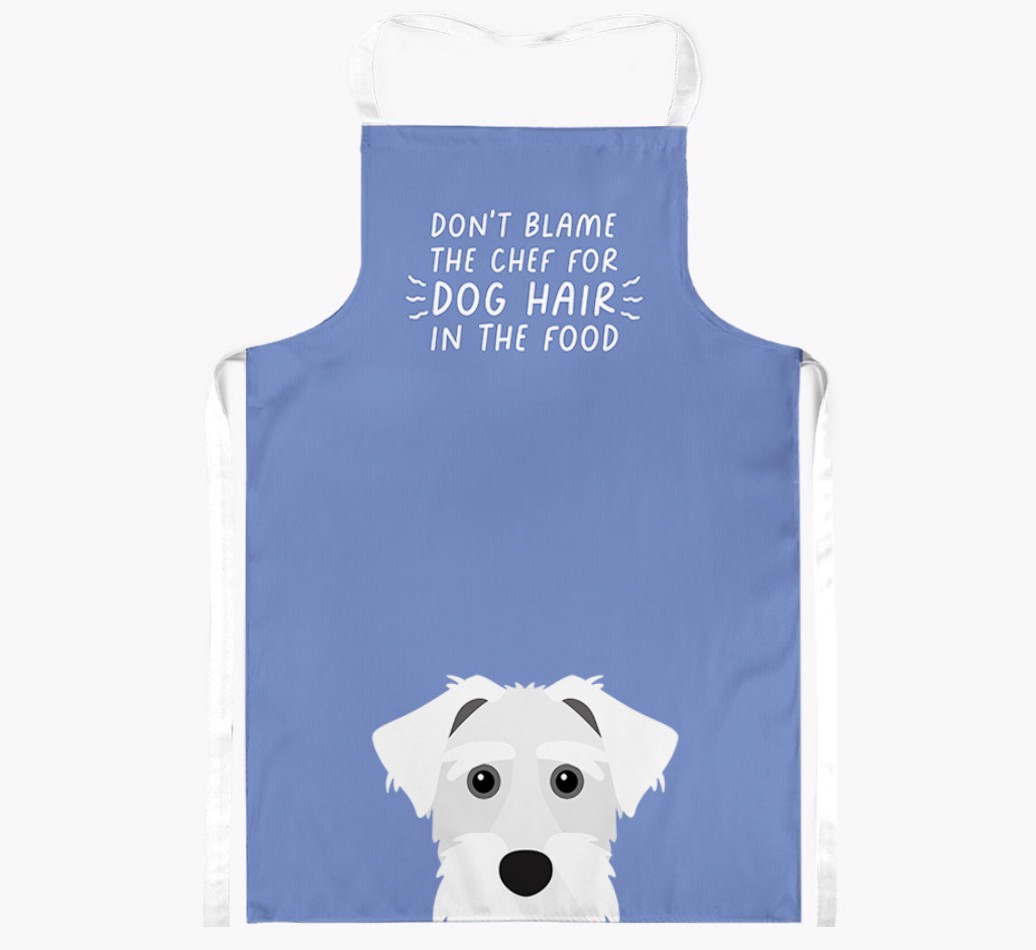 This funny apron will warn friends and family not to blame the chef for dog hairs in their food, they have Sporting Lucas Terrier to thank for that!
