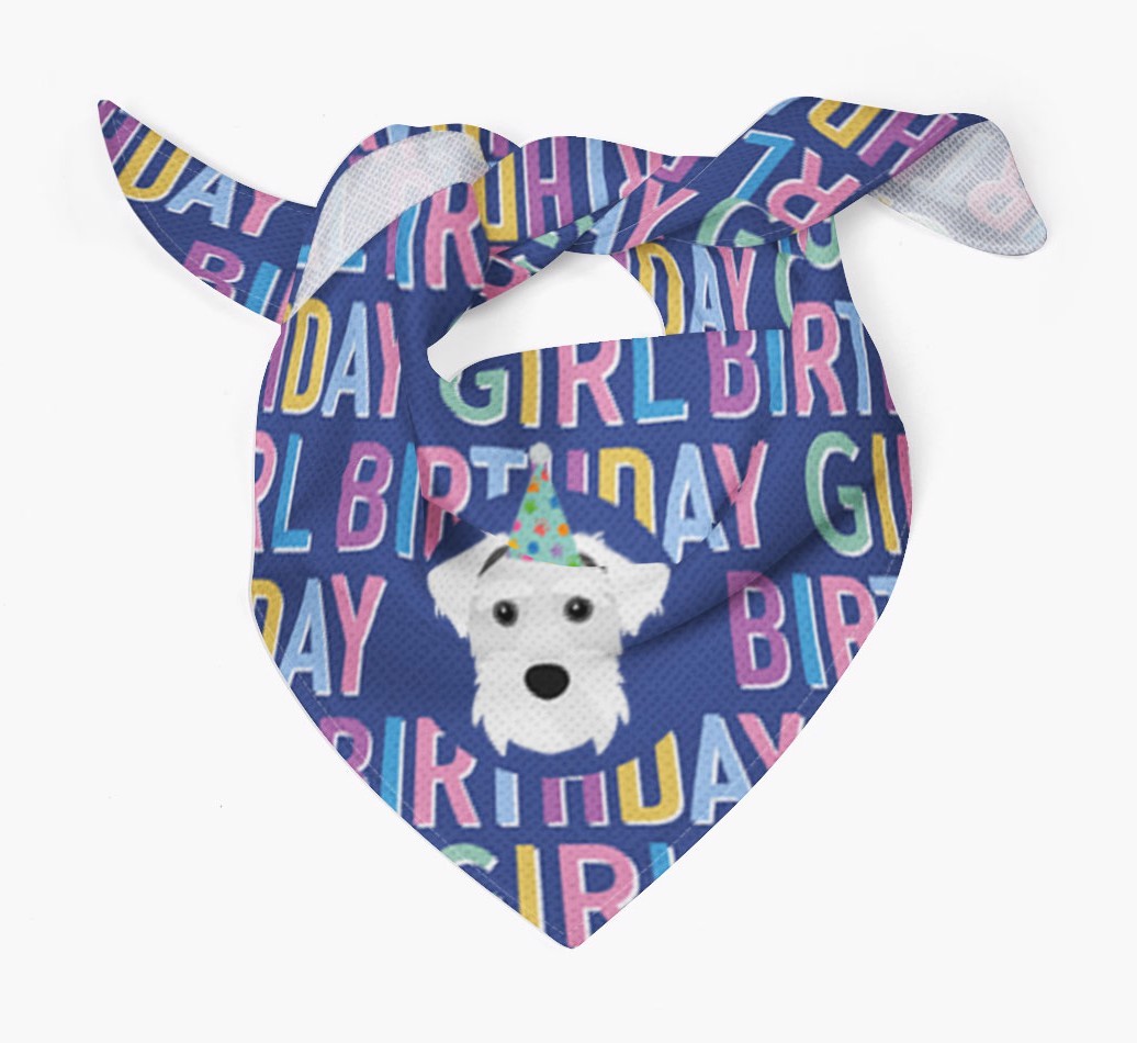 Featuring a text pattern that reads 'birthay girl' and personalized with Sporting Lucas Terrier's cute icon (complete with a fun party hat), your Lucas Terrier will look simply pawgeous on their special day when they're wearing this bandana.
