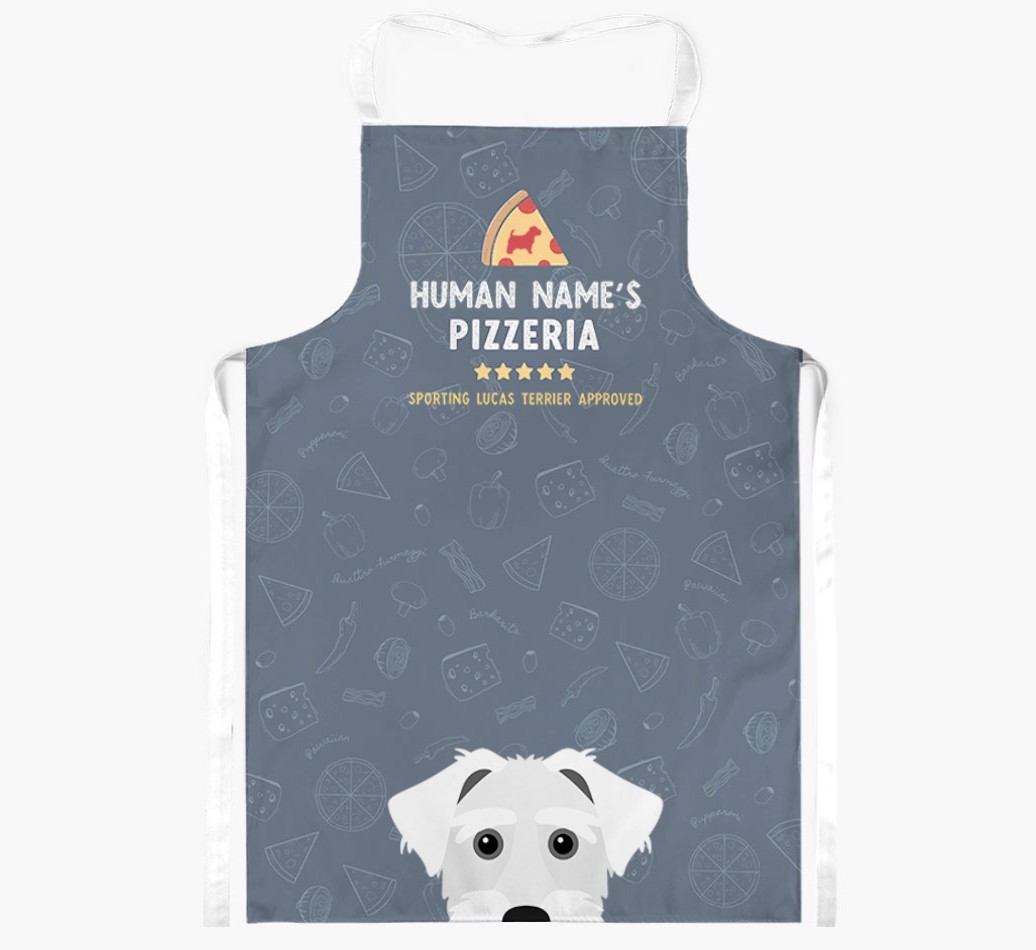 Featuring your furry friend's icon and lick of approval, plus your chosen human name, this apron is pawfect for anyone who considers themselves a pizza maestro in the kitchen. Available in a choice of 5 rustic colors, it'll make any Lucas Terrier lover happy.