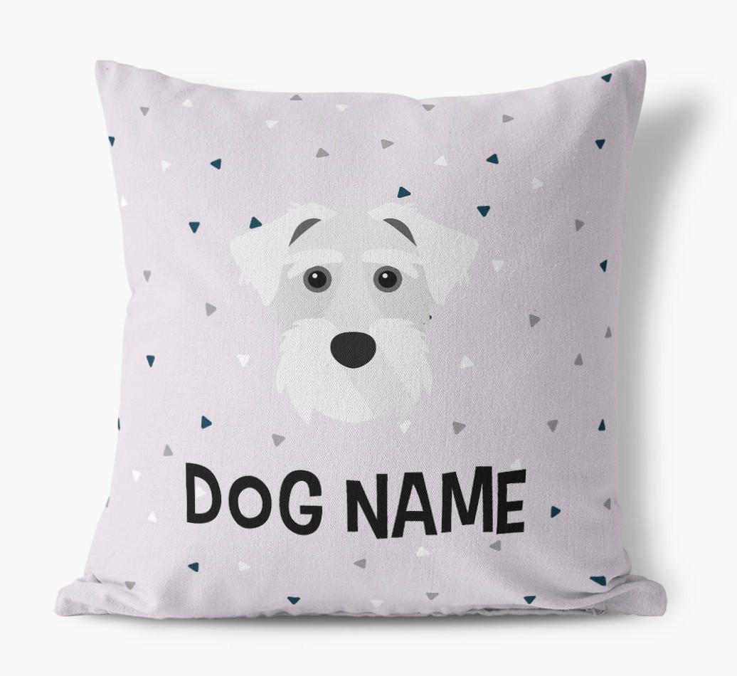 Featuring a stylish triangle pattern, this pillow is available in 5 wagnificent colors and is personalized just for Your Lucas Terrier, making is extra special.