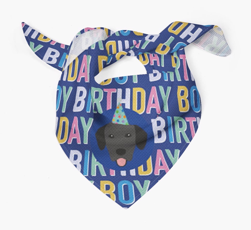 Featuring a colorful text pattern that reads 'birthay boy' and personalized with Springador's cute icon (complete with a fun party hat), your Springador will look simply pawgeous on their special day when they're wearing this bandana.
