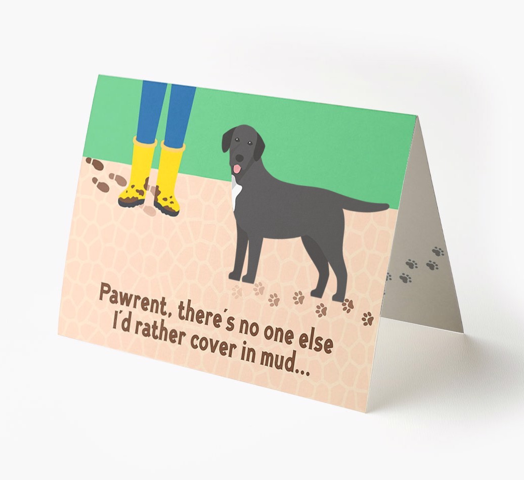 This comical card is sure to delight Springador's pawrent (without getting muddy), especially as it stars their Springador's cheeky icon.
