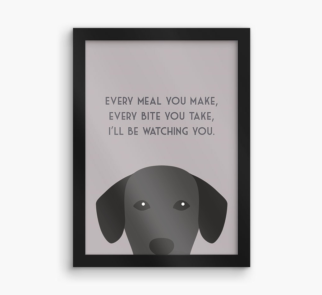 Printed with the words, ‘Every meal you make, every bite you take, I’ll be watching you’ and complete with our cute Springador peeking from the bottom of the design, this artwork will look great on display in the kitchen or anywhere Springador likes to watch you eat!