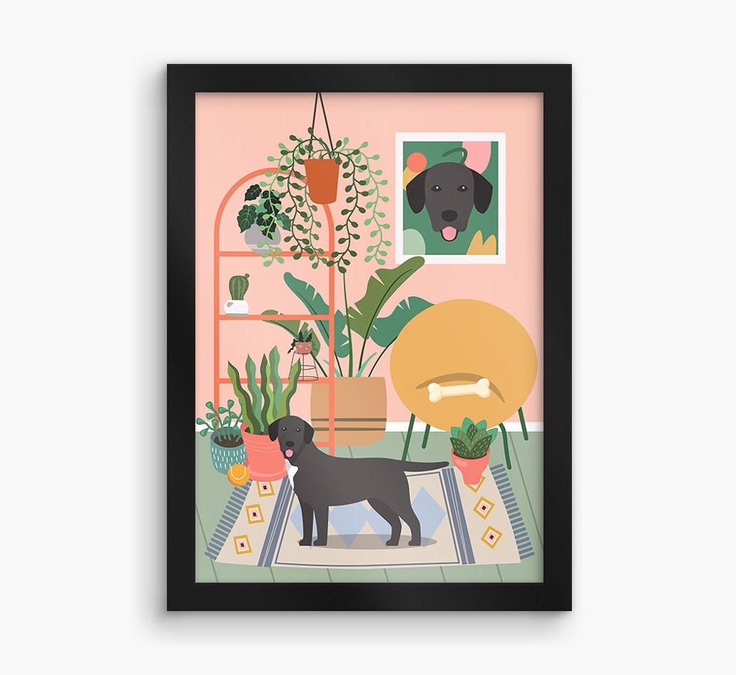 This contemporary piece of wall art pairs a chic living space with lovely pastel tones and a jungle of houseplants. Complete with the one that makes your house a home - Springador! - this print is a wonderful way to display your love for your pooch.