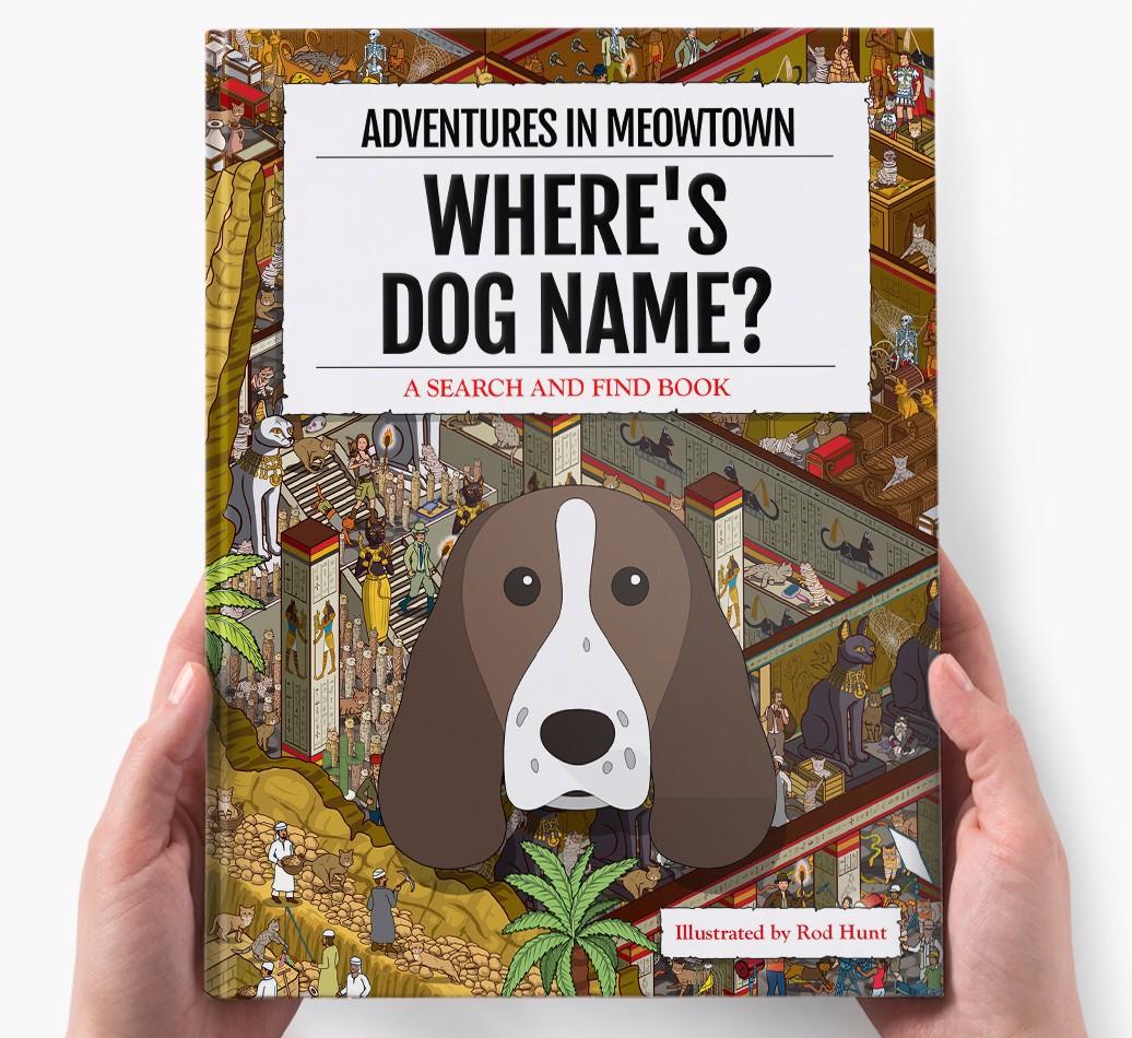 Get ready to unleash your inner detective with our popular Search & Find book, ‘Where’s (insert dog name)?’ It’s the personalized dog book everyone’s yapping about! With twelve beautifully illustrated locations to explore, we challenge you to find your adventurous {breedShortName} on each action-packed page. Can you spot all the canine cameos and funny parodies too?