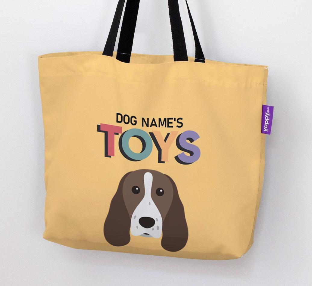 Don’t worry, we’ve got you covered with this pawsonalized canvas bag made for your Springer Spaniel’s toy collection!