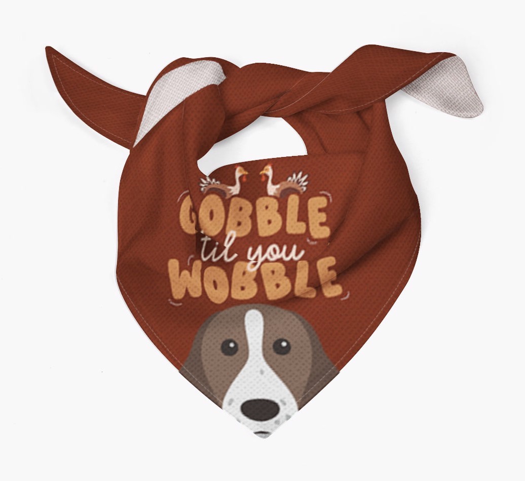 This cute custom bandana is printed with the phrase of the season, "gobble til you wobble"!