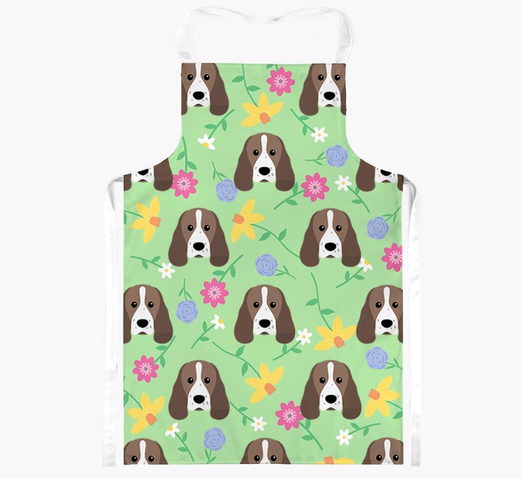Featuring a gorgeous pattern of flowers and your dog's adorable face, this vibrant apron is bursting with canine charm and flowery fun - perfect for adding a splash of color to your kitchen.