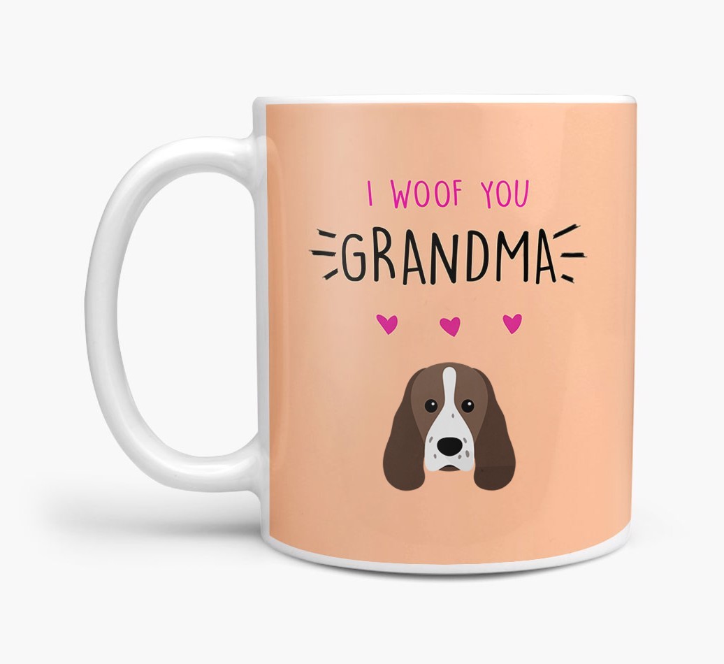 Personalized with your pup's adorable icon, this mug is a charming way to treat your pup's grandma and express how much you and Sprocker woof them.