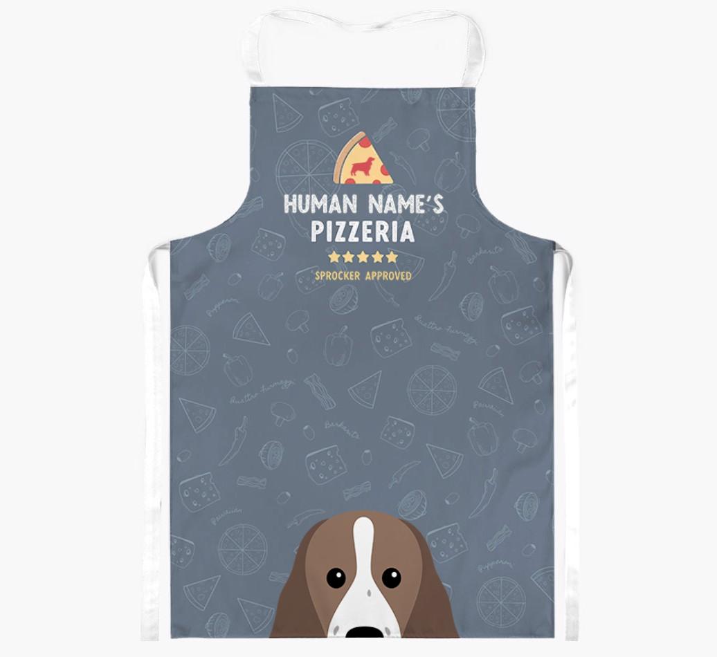 Featuring your furry friend's icon and lick of approval, plus your chosen human name, this apron is pawfect for anyone who considers themselves a pizza maestro in the kitchen. Available in a choice of 5 rustic colors, it'll make any Sprocker lover happy.