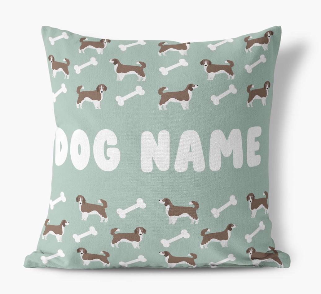 Personalized with Sprollie’s name against a background of Sprollie icons and bones, this gorgeous pillow is full of pawsonality.