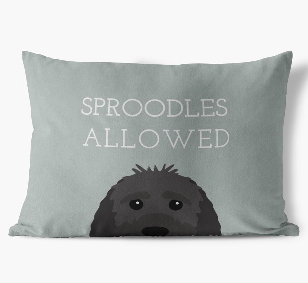 This exclusive, luxurious pillow is printed with the words ‘Sproodles Allowed’, which I’m sure Your Sproodle would definitely approve of.