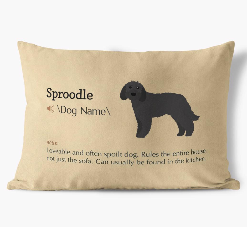 Personalized just for Your Sproodle and featuring a unique Sproodle definition and silhouette, this pillow truly is like no other.