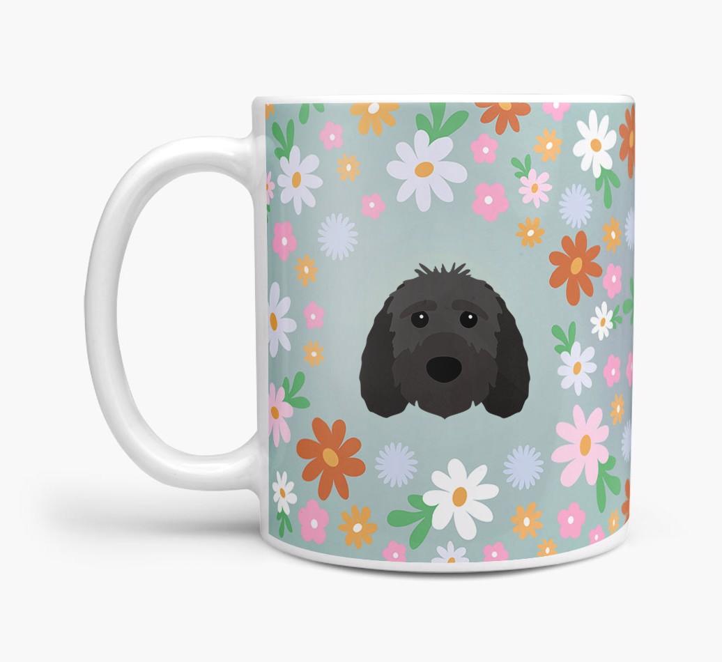 Featuring a colorful bunch of flowers, this mug is printed with the words 'woofly grandma' on one side of the mug and your Sproodle's cute icon on the other. Bloomin' lovely!