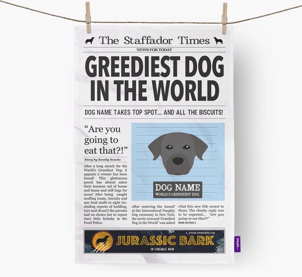 This unique dish towel puts Staffador truly in the spotlight (as if they weren’t already). It features a Yappy exclusive Staffador mug shot icon as well as two smaller Staffador silhouettes.