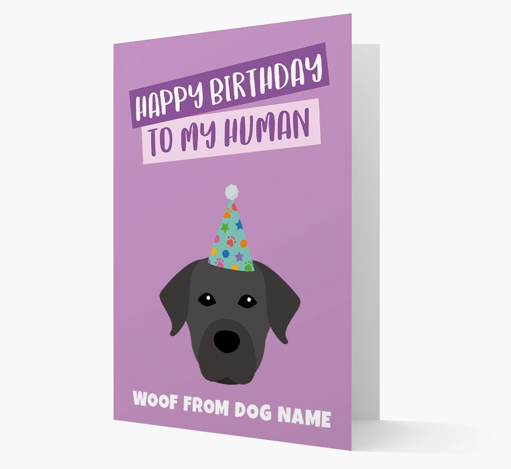 'Happy Birthday to My Human' - Personalized Staffador Card