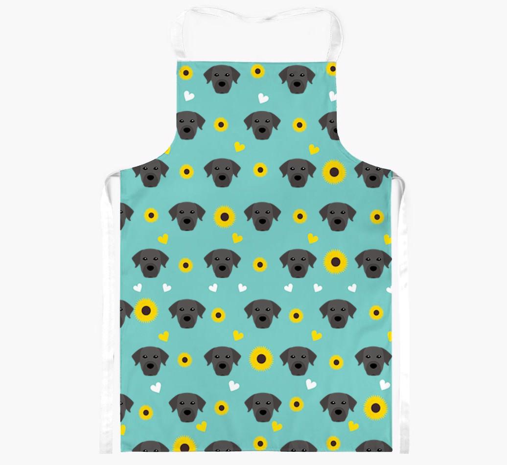 This apron has a delightful sunflower and heart pattern, and best of all - it's personalized with Staffador's face too! This cute and colorful apron is sure to put a smile on every dog lover's face.