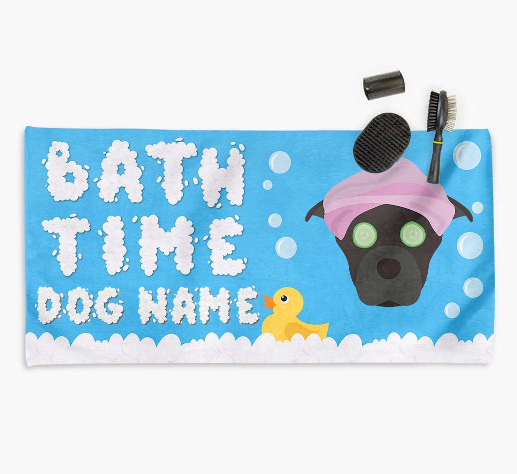 Does Your Staffie love bubble baths? Once they've bathed, take their bathtime experience to the next level by wrapping them up in their very own towel, that's personalized just for them.