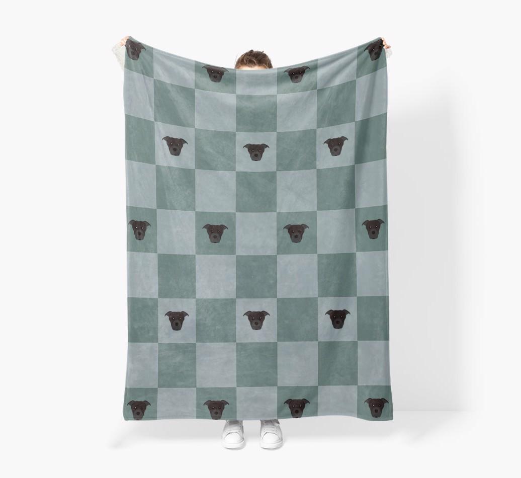 'Checkboard' - Personalized Staffordshire Bull Terrier Blanket: Premium Sherpa Fleece