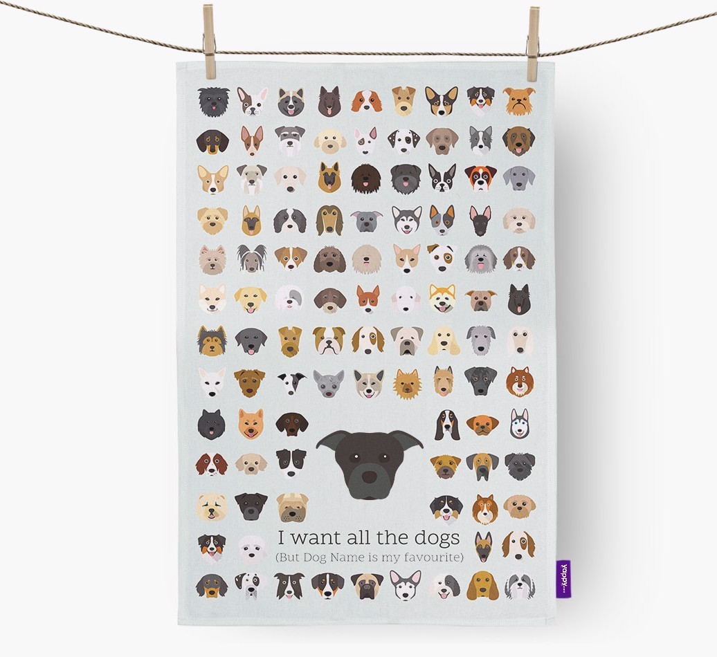 'I Want All the Dogs' - Personalized Staffordshire Bull Terrier Dish Towel